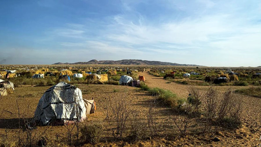 And then Tawila itself and its surrounds are host to large, large, large, internally displaced persons camps, mainly with tent-like shelters or simple wooden constructions to create some shelter. As you drive out of Tawila, you see large numbers of people on the road by foot, but also on the back of donkeys or donkey carts, or on camels, with what looks like possessions and big bags of it, just moving.