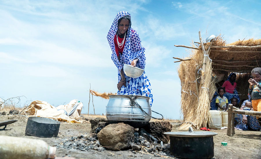 رغم استمرار حمى ابنتها وبكائها المتواصل، لم يكن هناك طبيب قريب تأخذها إليه حليمة. وفاقم انعدام الأمن الغذائي حالتهم سوءًا. تقول حليمة: "لا نأكل كثيرًا. نطهو العصيدة، وأحيانًا البودينغ. أما نحن، فإذا تناولنا الطعام في الصباح، فلن نأكل إلا في المساء".