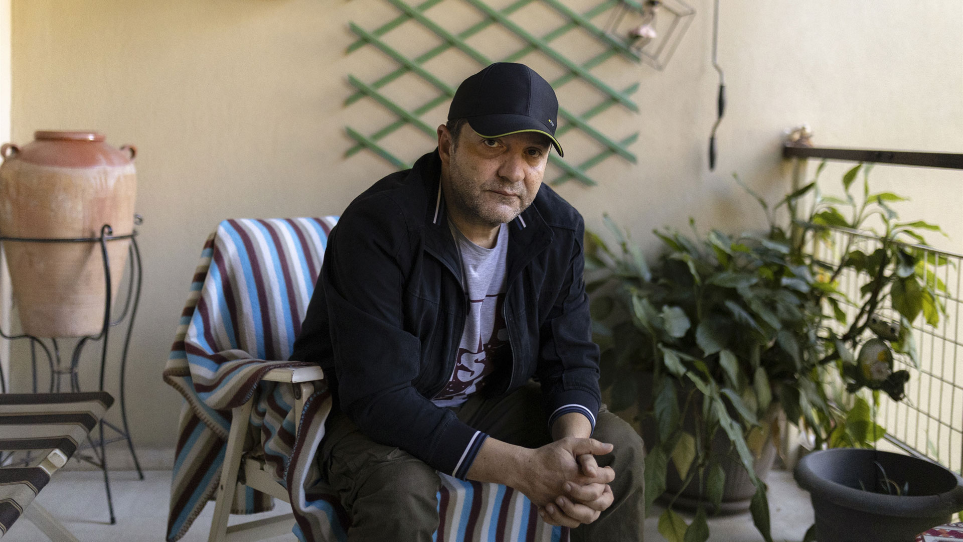 كونستاندينوس (كوستا) ماكريس على شرفة شقته في أثينا، قبل أيام قليلة من مغادرته إلى السودان. صحيفة (كاثيميريني)